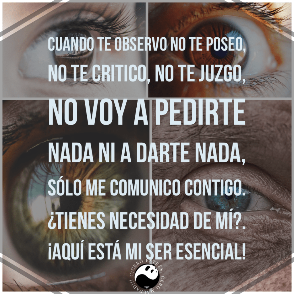 Cuando se logra transformar la mirada en bendición constante se llega a la mirada mágica. Esta mirada dice: “Cuando te observo no te poseo, no te critico, no te juzgo, no voy a pedirte nada ni a darte nada, sólo me comunico contigo. ¿Tienes necesidad de mí?. ¡Aquí está mi Ser esencial!”