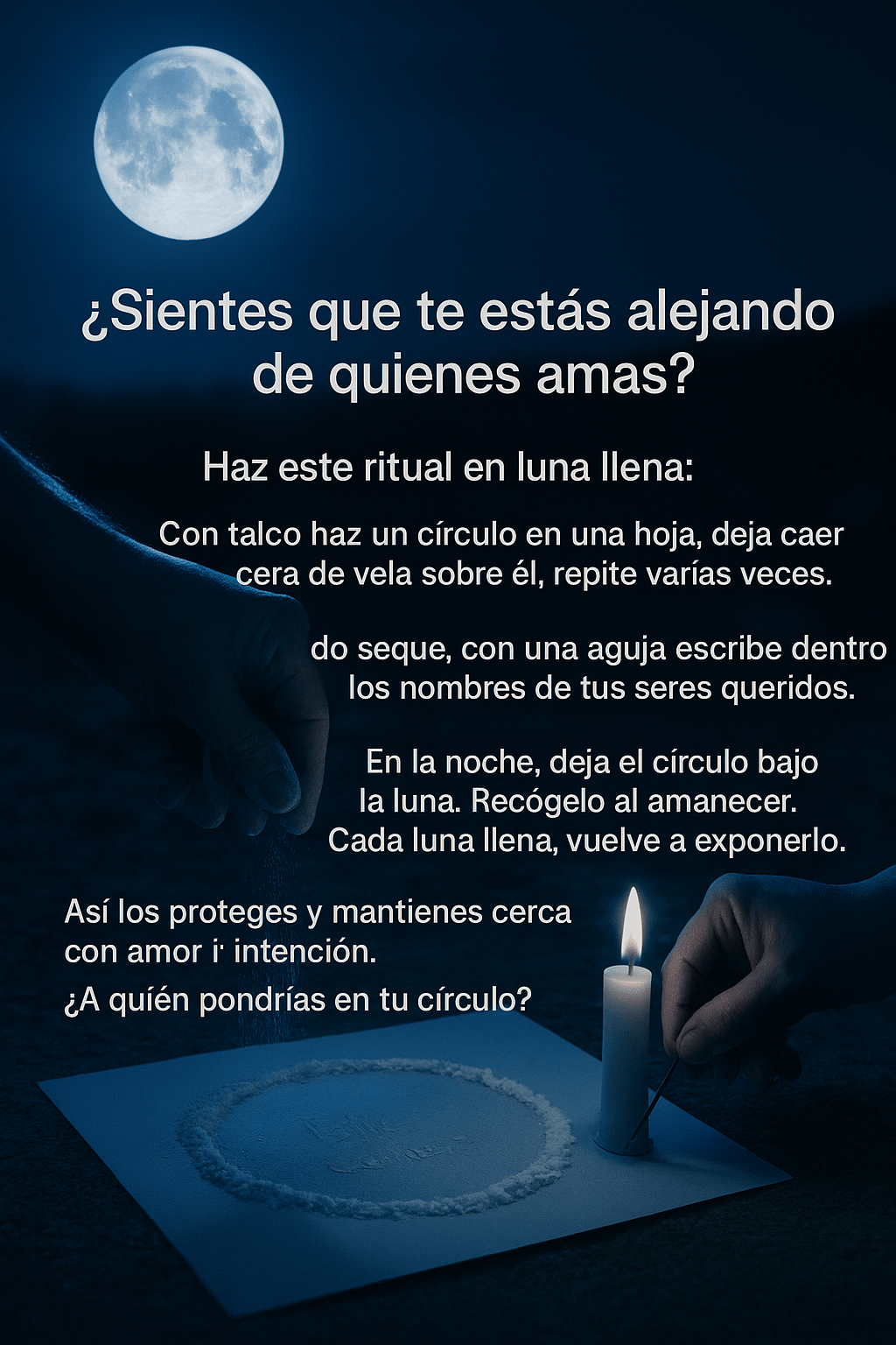 Tal vez lo que más necesitamos no es controlar el mundo, sino confiar. Tal vez lo más sabio no es retener, sino proteger con amor. Y este ritual es justo eso: una forma de decir “te cuido” sin palabras, de construir un puente invisible entre tú y los que amas.